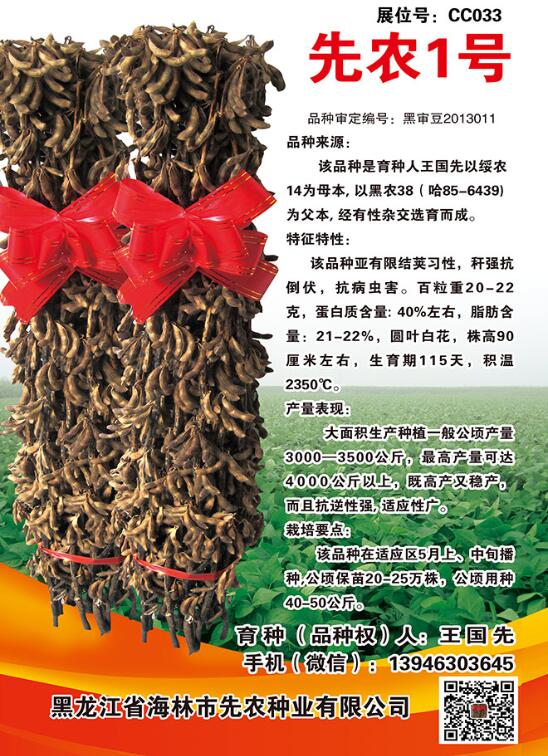 黑龍江省海林市先農(nóng)種業(yè)有限公司,品種權(quán)人(育種人):王國(guó)先13946303645(微信號(hào))