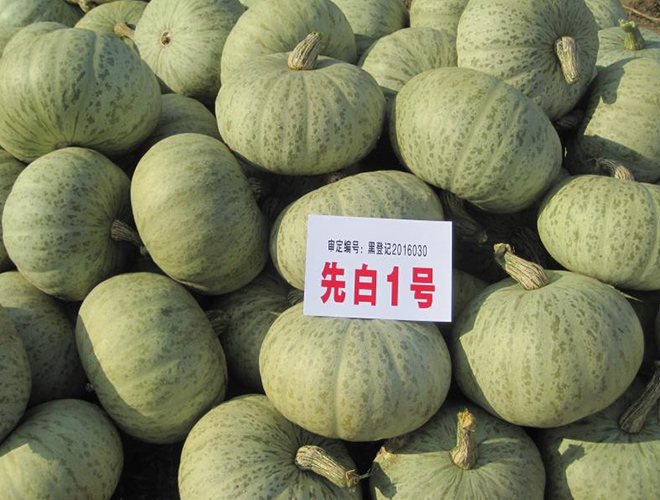 該品種是海林市農(nóng)民育種家王國先以HN為母本,102B為父本,雜交育成的籽用南瓜單交種,2016年審定推廣,審定編號:黑登記2016030。